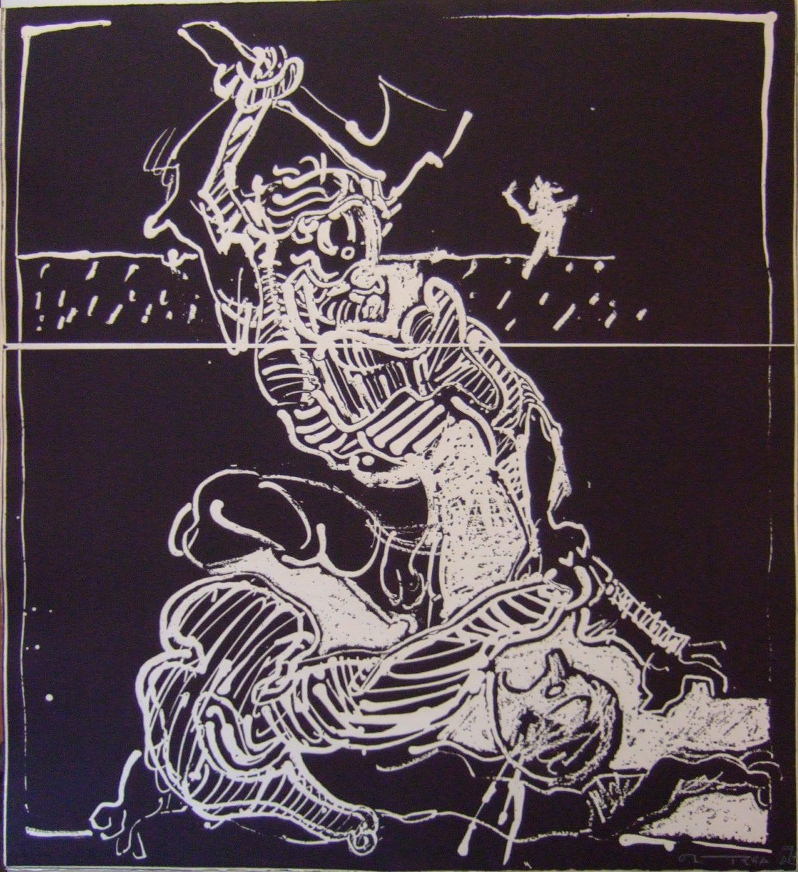 JOSE ORTEGA INCISIONE ACQUATINTA E INTAGLIO IN LEGNO “CAINO E ABELE”
